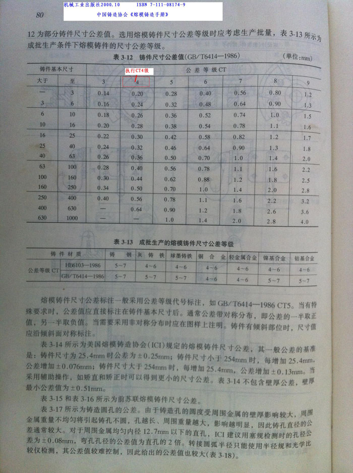 硅溶膠熔模鑄件尺寸公差CT4級